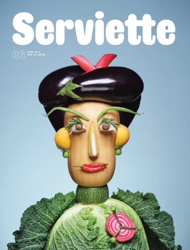 Issue 6 of Serviette explores how food and design are now, and always have been, deeply entwined. Current fads like French toast lip tint are fun, but when food and its stories are crafted with care, they awaken more than our appetite. In this issue, Sadiya Ansari investigates the thoughtfulness of London’s new lesbian bars, Sarah Musgrave and Eamon Mac Mahon reveal the ingenuity of an industry-leading, robot-powered mushroom factory, and Sierra Marilyn Riley details the subversiveness of feminist bakers, with lots of frosting included. From typography lovers to utensil collectors, intrepid fine diners and hosts with the most, we think everyone will find something to sink their teeth into in issue 06. That’s by design.
